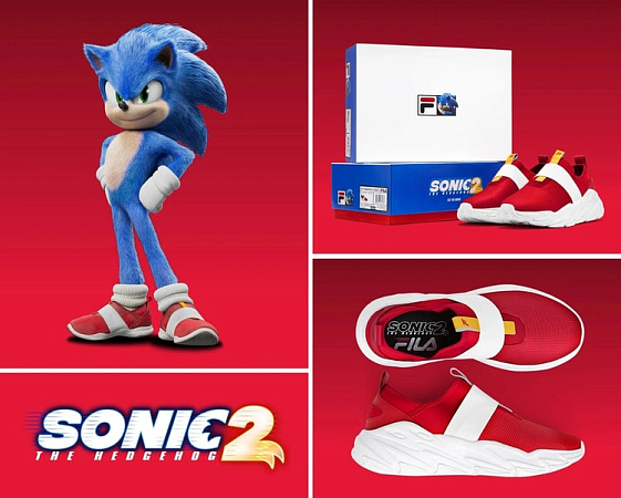 Яркий акцент культового персонажа — красно-белые ботинки, в которых он изображен в фильмах, играх и комиксах. Их дизайн лег в основу слипонов унисекс Ray Tracer Evo, максимально похожих на нарисованный оригинал. Обувь стала результатом сотрудничества FILA с Paramount Pictures и была представлена в честь продолжения картины «Соник в кино», вышедшего в прокат.